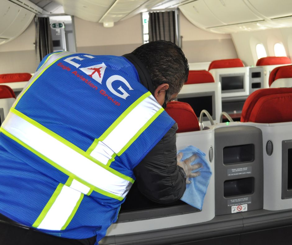Cabin cleaning and security sweeps are an important part of aviation safety. We routinely sweep for explosives, banned items, and other security threats. It is important that all airline passengers remain vigilant about suspicious activities and report any suspicious activity to our staff. EAG a great emphasis on maintaining high standards when it comes to passenger safety and security.